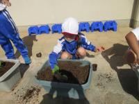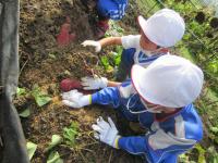 10月6日,田村の畑に行き,春に苗を植えたさつまいもを収穫してきました。お世話して下さった畑の先生の話をしっかりと聞き,友達と協力して上手にほることができました。つるがいっぱいありましたが,なんとかほることができて,みんなとても満足そうな表情をしていました。