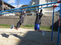 運動場に遊具が増えました。待ちに待った雲梯です。全校で遊び方のルールを確認したあと、昼休みには遊びたい人たちで順番待ちになっていました。上手に最後まで渡りきる子もいました。どんどん使って、体力アップしましょう。