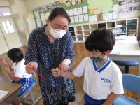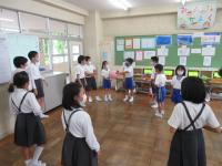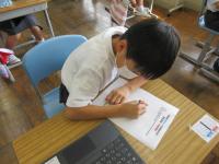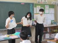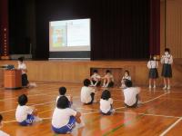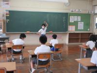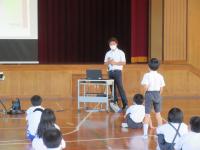 2年生が道徳授業で,健康に気をつけ,よくかんで食べることの大切さについて考えました。授業の後半には,栄養教諭から「1つの物ばかり食べるのではなく順番に食べること」や「姿勢よく食べること」,「はしの使い方」についてのお話を聞きました。学習の後,子どもたちは「やっぱりよくかんで食べることは大切なんだ。」「正しい持ち方ではしを使いたい。」などと話していました。