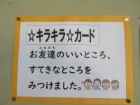 9月のキラキラカードを代表委員会が紹介してくれました。みんな、友達のいいところやしてもらってうれしかったことを見つけていました。ランチルーム前に飾ってあります。これからも友達のキラキラの姿をたくさん見つけられるといいですね。