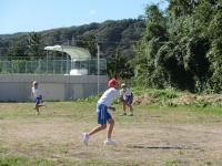 スポーツクラブは、「野球」に挑戦しました。本格的な野球ではなく、柔らかいボールを使った野球で、みんなバットに当てようとがんばっていました。チームワークを大切に、声をかけ合っていました。