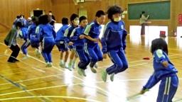 現在,毎週水曜日の体力アップタイムに「長縄跳び」を行っています。2分間全員の息を合わせて跳び続けるという,たいへんきつく難しい種目ですが,それでもかなり続くようになってきました。回し手2人の技術が決め手です。
