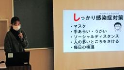 久しぶりに児童の元気な声が本校に戻ってきました。1時間目に行った始業式では,少し立派になった児童たちの様子を見ることができました。この日は,①「コロナ感染が拡大していることから,これからも感染対策をしっかりしていくこと」②「この日の書き初め大会のこと」③「金曜日の百人一首大会(授業参観)のこと」④「3学期を迎えての心構え」について話しました。養護教諭からは,コロナ予防について話がありました。児童にとって「耳にタコ」ではあるでしょうが,それでも話さなくてはなりません。養護教諭は,全国の感染データ等(写真の数字は,前日の日本全体の感染者数です。)も示し,児童の危機意識を上手に喚起していました。今年も本校は,感染症対策に万全を期します。ご協力お願いいたします。