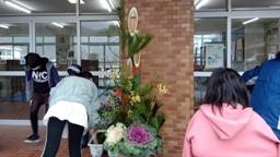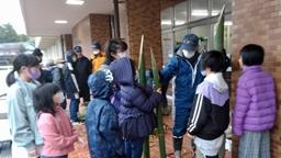 門前公民館行事で門松作りを行いました。最初に本校玄関の分を2つ,次に,二手に分かれて門前公民館と門前支所の分を2つずつ作りました。本校からは,児童11名が参加。雨(途中から雪)降る中,公民館の方々(6名)とY君(卒業生)のお手伝いをしっかりがんばりました。例年の2倍もの児童が参加してくれたので人手が多く,私は見てるだけでした。8時30分に始まった活動は,ちょうど10時に終了。すぐに次の活動(冬休みの宿題教室,焼き芋パーティー)が始まりました。参加した児童にとって,いい冬休みのスタートとなりました。お世話下さった門前公民館の皆様,ありがとうございました。