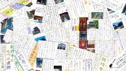 左上写真は全員のパンフレット。中央上は北陸中日。右上はその新聞でインタビューに答えた児童のパンフレット(左がT君,中央は新聞記事,右がHさん)。左下は11月30日に交流館で行われたパンフレット引渡式。中央下はその時の様子を写した北國新聞,右下は同じく広報わじま1月号。