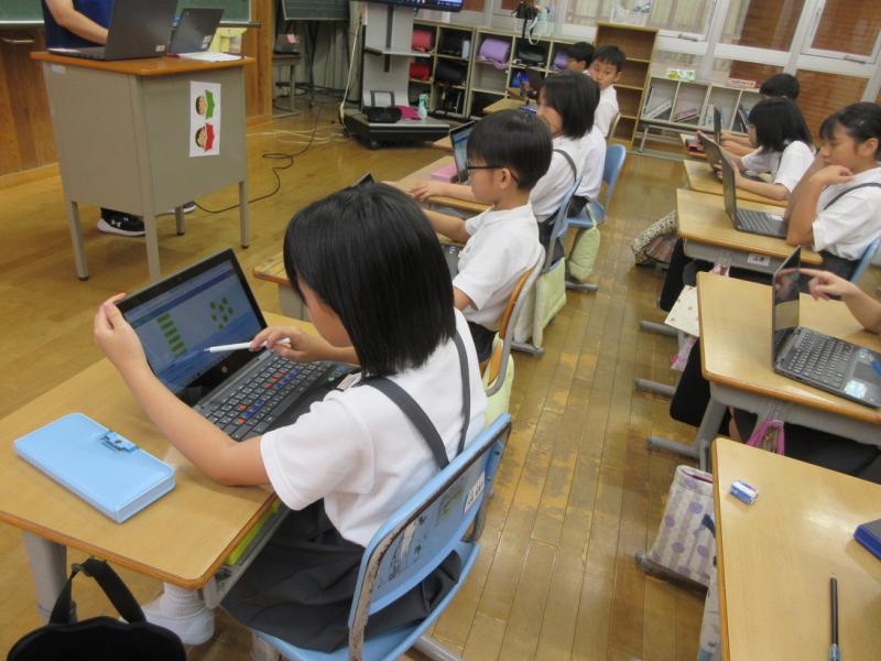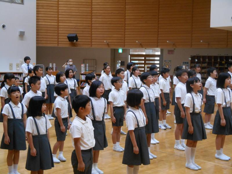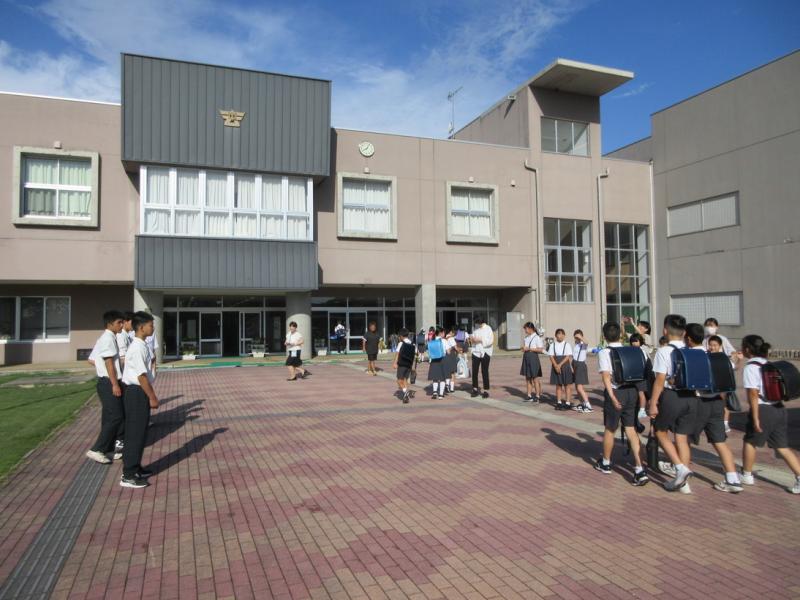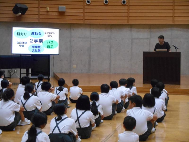 2学期がスタートしました。始業式では、元気に校歌を歌い、2学期がんばることのお話を聞きました。2学期は、たくさんの行事や活動があります。みんなで協力して、笑顔があふれる学校を目指しましょう。教室では、早速、真剣に学習している様子が見られました。休み時間には、夏休み作品展を見入る様子、給食時間にはおいしそうに食べる様子など、たくさんのよい表情が見られました。