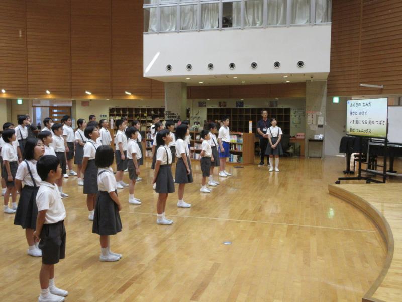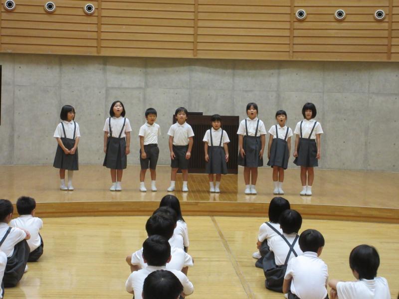 児童集会では、はじめに今月の歌「フェニックス」を歌いました。次に1・2年生が、とても元気のいい声で音読発表を行いました。校長先生のお話の後、縦割り遊びをしました。今回も6年生が楽しい遊びを準備してくれました。フルーツバスケット、クイズ、風船バレー、ドッチボール、どのグループもとても楽しそうになかよく遊んでいました。