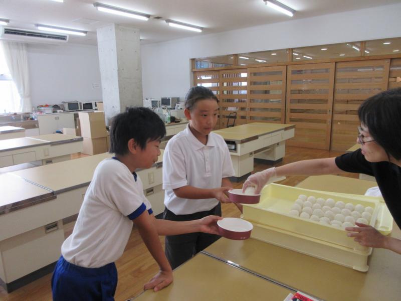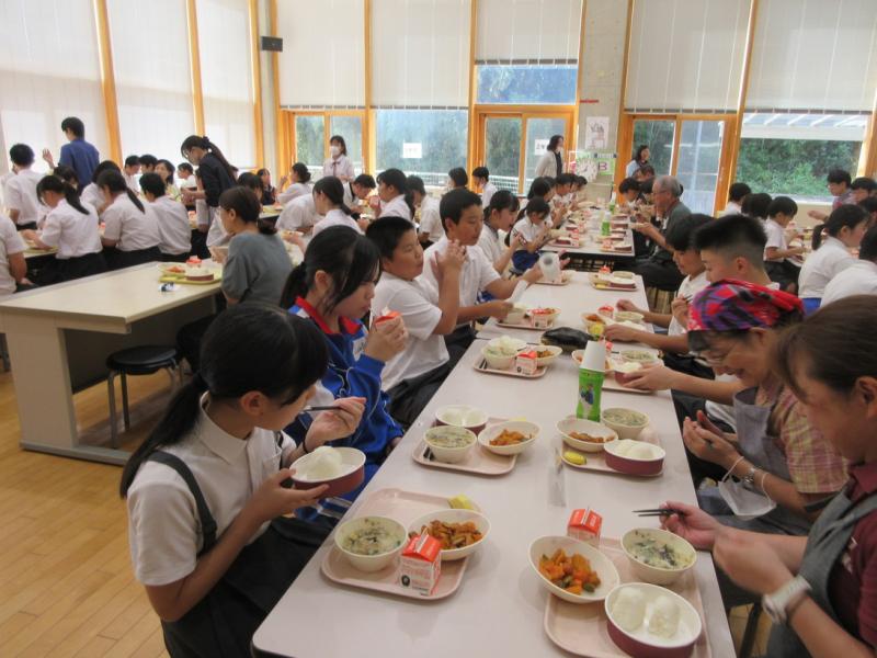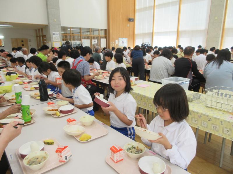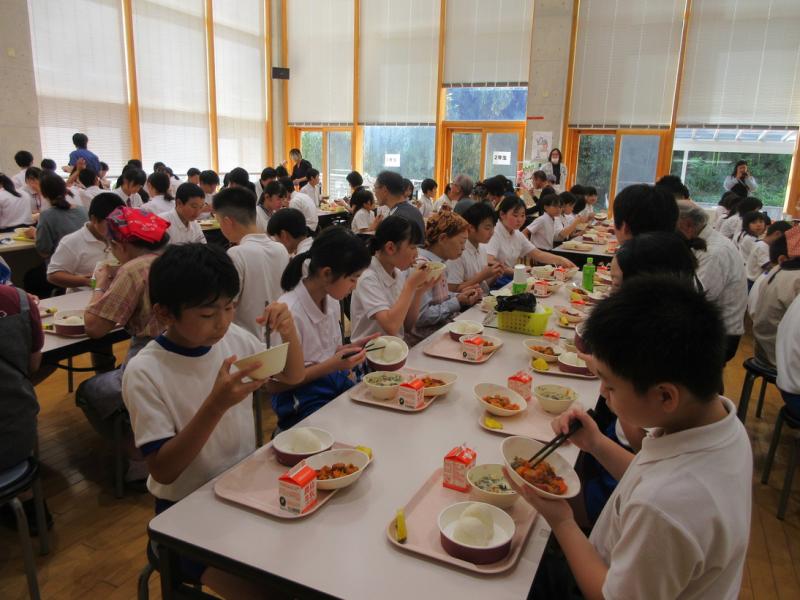 5・6年生が稲刈りしたお米をたかねをクラブのみなさんが、おにぎりにしてくれました。給食時間に6年生の代表がお礼を伝え、一緒に味わいました。とてもおいしく、お代わりする子もたくさんいました。