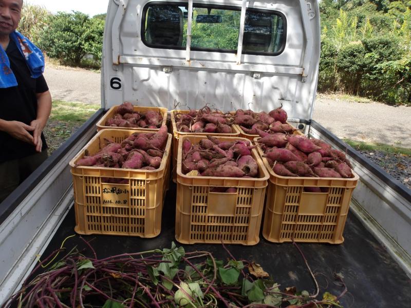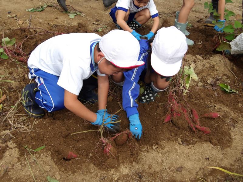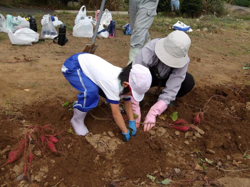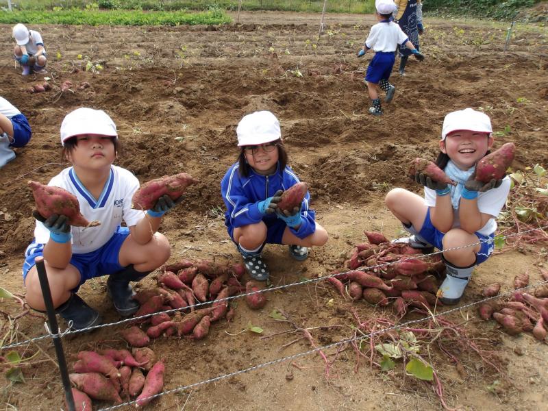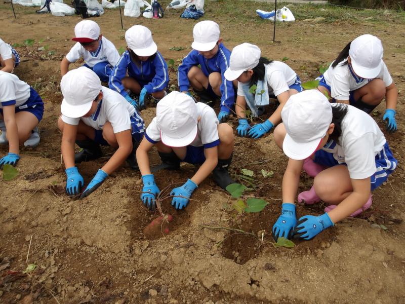 1~4年生が、さつまいもほり体験を行いました。土の中のさつまいもを見つけてみんな大喜び。夢中になってほっていました。大きなさつまいも、丸いさつまいも、長いさつまいも、いろいろな大きさ、形のさつまいもがたくさんとれました。お世話してくださった阿岸公民館のみなさん、ありがとうございました。