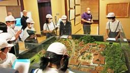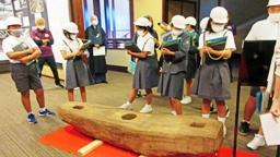 禅の里交流館に行き,宮下さんに,總持寺の歴史や建物について詳しく教えていただきました。總持寺を作る際に,大きく重い部材を運ぶのに使った修羅(しゅら)には,大きく興味を引かれたようでした。