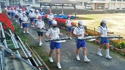 この日,最終練習を行いました。とっても暑く,夏が戻ってきたかのような日でした。児童たち,張り切って行進。いい練習ができました。ただ,やはりこの暑い中,マスクをして演奏しながら歩くのは,ちょっと厳しかったようです。児童の皆さん,あと少しです。頑張って下さい。