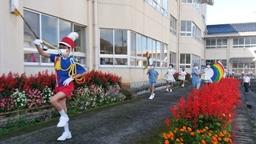 台風一過。秋晴れに恵まれたこの日。日程を一日ずらさせていただいたおかげで,絶好のパレード日和にて,念願の鼓笛パレードを行うことが出来ました。急な日程変更に全面的にご協力下さった保護者の皆様,誠にありがとうございました。