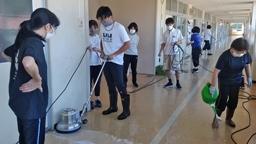 パレードの余韻が覚めやらぬ午後,職員で3階廊下のクリーニング(汚れ落とし・ワックスがけ)を行いました。夏休み中に1階廊下をクリーニングしており,これで教室階廊下が見違えるほどきれいになりました。児童の皆さんには,気持ちよく学校生活を送ってほしいです。