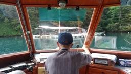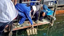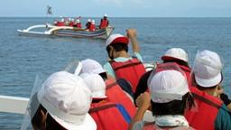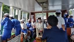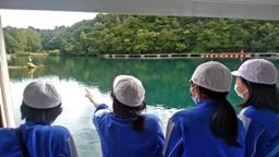 8:00学校出発。最初に向かったのは九十九湾。9:30,越坂観光船に乗船。九十九湾を周遊しました。子供たちは大興奮。天候にも恵まれ波もなく,素晴らしい2日間になることが期待されました。途中,大きな筏にて下船。生け簀の魚に餌をあげたり,タコの吸盤の感触を楽しんだりしました。