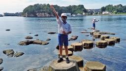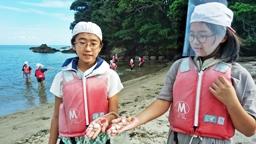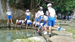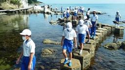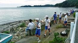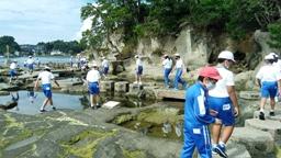 10:20,磯の観察。のと海洋ふれあいセンターの方にガイドしていただきました。カタクチイワシを素手で捕まえる猛者が多数現れるなど,たいへん楽しい時間となりました。