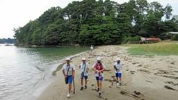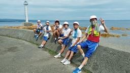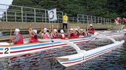 13:30,海洋活動。カヌーです。海は凪。完璧なカヌー日和でした。3チームに分かれて乗ったのですが,気持ちよく乗れたのは最初だけ。相手に負けないことばかりが目標となりました。まあ,仕方ないですね。本当はカヌーを楽しみ,海上で過ごす体験を満喫して欲しかったのですが。でもまあ,みんなそれはそれで楽しんでいたので,合格です。