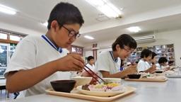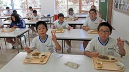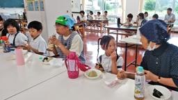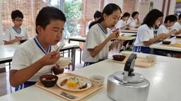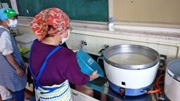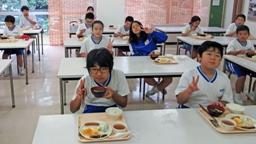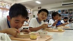 4・5年生が田植え・稲架作り・稲刈り・稲架かけと,一連の米作りに励み,見事に美味しいお米ができました。たかねをクラブの方々が,この日,そのお米を使って,美味しいおにぎりを握って下さいました。おにぎりパーティーです。児童たちは,まだほとんどの人が食べてない新米をお腹いっぱい食べました。大きな昆布入りおにぎり2つ(おぼろ昆布巻きと海苔巻き)を食べた児童たち。まだまだ足りないと,多くの児童たちがおかわり(塩むすび)しました。多い児童で,計5~6個食べました。ふだん家ではこんなに食べないのでは?たかねをクラブの皆様,ありがとうございました。