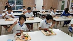 8:00朝食。夕食以来15時間ぶりの食事,しかも散歩もしたとあって,児童たち,勢いよく平らげました。