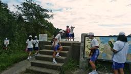 9:00追跡ハイキング開始。7kmの道のりです。折り返しでの休憩10分間を除く2時間で歩きます。それより早くても遅くても減点。さらに,所々にあるクイズに答えなければなりません。この2つの合計得点で優勝をかけて戦います。スタート地点では元気にジャンプしていた児童たちも,だんだん疲れ,グループは一緒に歩かなければならないのに,ついつい置いて行かれそうになる児童が続出しました。それでも全員完歩。これには我々教員もビックリ。よく頑張りました。