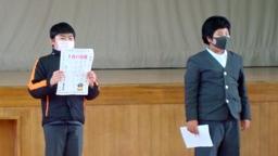 12月の児童集会での委員会発表が,6年生にとって最後の仕事でした。みんないつものようにしっかりと発表してくれました。次回からは5年生の仕事です。よろしくお願いします。学年発表は1年生。この日急にお休みした児童の分まで頑張ってくれました。ハンドベル演奏で,急遽新しい役割をもらった児童が,すごく緊張しながらも頑張っている姿が素敵でした。なお,今回の集会からジェットヒーターを使いました。たった一つしかありませんが,かなり効果がありました。