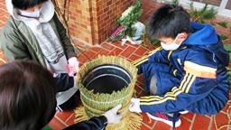 門前公民館の方々にお世話いただき,本校玄関前に飾る門松を2本作りました。冬休み初日のこの日は,公民館関係者4名,本校職員2名,そして児童が6名参加しました。とても大きな門松を1から作るという大変な作業でしたが,手慣れた方が多く,30分ほどで完成しました。お世話下さった皆様,ありがとうございました。