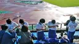 選手は,出番前にサブトラックにて軽い練習を行い本番に備えました。以下に,本校選手の記録を記します。
