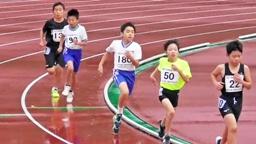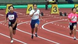 県のトップアスリートが揃うこの種目で,周囲の選手たちに負けない走りで,100mを力強く走りきりました。