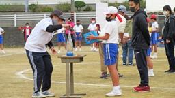 10月18日(日)に3位決定戦が行われ,門前クラブは大屋少年野球クラブと対戦。勝者は,来年の3月20・21日に津幡町で行われる学童野球加賀能登大会に,能登北ブロック代表として出場できるという大切な試合です。門前東小も門前西小も前日は運動会でしたが,選手たちは疲れも見せず頑張りました。この試合はミスが少なく締まった試合でした。エースの先発O君も快投。ほとんどヒットを許しませんでした。O君はバッターとしても照明にぶつけそうになる大ファールの後,コールド勝ちとなるサヨナラ2点左前打(中央写真)を打つなど投打ともに大活躍でした。4番のT君も,リリーフをしたり,右前適時打(左写真)を打ったりと活躍しました。また,Kさんをはじめとする何人もの選手が公式戦初出場を果たしました。新しいチームの公式戦初勝利,おめでとうございます。加賀能登大会,がんばってください。