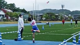輪島チビッコオリンピック前に,一度スパイクを履いて競技場を走らせておきたいと考え,放課後,行ってきました。短い時間でしたが,どの児童も,大変有意義な練習ができました。途中,練習に来ていたD君(彼も小6の時,県大会でハードルを走ったのです。)が,ハードル走のお手本を見せてくれました。すごく速くて上手で,児童たち,ビックリしていました。スクールバスで児童たちを帰した後で,残った職員でいろいろ片付けていましたが,どうしても走り高跳びのマットが片付けられません。大きく重すぎたのです。すると近くで練習していた輪島高校陸上部の生徒たちがそれに気づき,次々に手伝いに来てくれました。助かりました。素晴らしい子供たちです。輪島の未来は明るいですね。