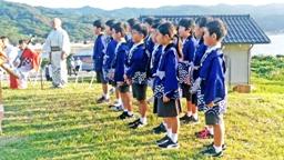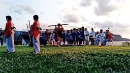 MRO(北陸放送)の特別番組「戦国加賀遺産TV~利家がのこしたモノ~(仮)」の収録があり,3・4年生が参加。能登麦屋節保存会の方々とともに,「能登麦屋節」を歌いました。場所は,皆月青少年旅行村キャンプ場。海が目の前の高台という,最高のロケーションです。リハーサルはまだ日が高い時間に行われましたが,本番は夕日をバックに撮影しました。どちらにしても完全な逆光。全くまともに写真が撮れませんでした。(そこで,横方向の写真しかありません。)もちろん,テレビ局のカメラは問題なく撮影できたのでしょう。
