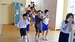 昼休みの終盤に突然響く警報音。理科室から火災発生です。各々好きな場所で遊んでいた児童たち,次々に運動場奥の避難場所に向かい,ハンカチを口に当てて急ぎました。高学年の児童が,近くにいた低学年の児童に避難方法を教えてあげている姿も見られました。これこそ,休み時間に訓練を行う意味でもあります。ただ,反省すべき点もあり,次回への課題ができました。避難訓練は,命を守るための大切な訓練です。いざという時のために,正しい避難を学びましょう。