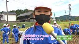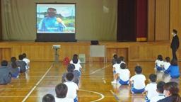 この他,読み聞かせに先立ち,現在ケーブルテレビにて放送中の「わじままるごと情報局」の稲刈りパートを上映しました。教室で見せた5年生以外のほとんどの児童が初視聴でした。先週食べたおいしいおにぎりのお米は,こうして収穫されたんだと知った低・中学年の児童たち。自分たちも5年生になったらそれを手がけることを知り,楽しみになったことでしょう。