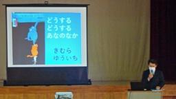 生徒指導の田中先生からは,①給食を食べる時のおしゃべりについて,②学校近くの工事現場に近づかないこと,③物には名前を書くことについてお話がありました。