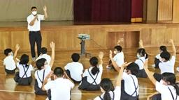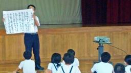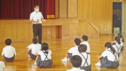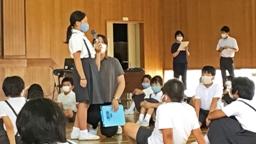 本郷地区の卒業生であるKさんが,本日から本校の学習サポーターとして勤務を開始。早速,児童集会の前に,全校児童の前で自己紹介をしてくれました。Kさんは現在大学3年生。夏休みを利用して母校の応援に来てくれることになったのです。学習サポーターは今年度始まった制度で,大学生・大学院生・短大生が対象です。業務内容は,①授業中の児童の支援,②プリントの丸つけ,③理科の実験助手などです。Kさんの勤務は,8月7日(金)までの2週間。短い間ですが,本校の児童たちのため頑張って下さい!よろしくお願いします。集会では,いつものように児童会からのお知らせと名文暗唱がありました。ここは6年生が流石だなあと思わせる出来でした。声も出ていて,揃っていました。内容を理解して暗唱していることが伝わりました。