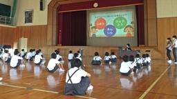 みんなが笑顔になるための集会を行いました。どんな人にも「自由・安心・平等」が保障されていることや一人一人が大切な存在であることを知り,いじめについて考えました。最後に,みんなが笑顔になった「嬉しかったこと」を紹介してもらいました。1年生の代表として,Yさんが「友達に『遊ぼう』と言ってもらってうれしかった」ことを発表しました。集会の後,「難しかったけど,いじめはだめだと思った」という感想を話してくれました。大人でも難しいことですが,素直に考えられる1年生だからこそ,今のうちから人として大切なことを学び,「自分も大切に,周りの人も大切に」できる人になってもらいたいと願っています。(越渡)