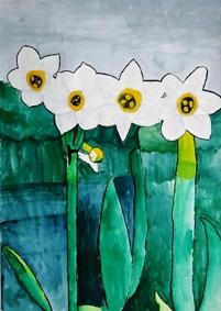 奨励賞 6年 Hさん「家から見える景色」,5年 U君 「元気なすいせん」