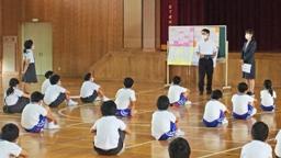 今年度からの2年間,本校は「人権教育推進校」に指定されています。この日は,その第一弾として,通常の児童集会のプログラムに加えて,「人権」についてのお話や,全校で取り組んだ「あいさつ名人」の表彰も行うなど,児童集会の中に人権に関わる内容を取り入れました。私は,朝の健康チェックの際の挨拶について,児童と話し合いました。その結果,理想的な挨拶の仕方について共通理解できました。(早速翌日から,一部児童の挨拶が,それまで以上に良くなりました。)