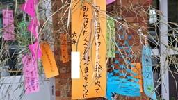 本日は七夕の日。残念ながら朝方からの雨はやみそうもなく,夜に星空を眺めることは叶いそうにありません。しかし私たち教職員は,その願いを叶えるために努力する児童たちを,これからもしっかりと支援していきます。中央写真の6年生の短冊には,「早くコロナウイルスが終わって,みんなとたくさん遊べますように」と書かれています。今年は,このように新型コロナウイルス関連の願いが多くありました。例年であれば,8日朝に片付けるのですが,明日の授業参観の際に,保護者の皆様にもご覧いただければと思いますので,今年の片付けは9日朝に行います。よろしくお願いいたします。