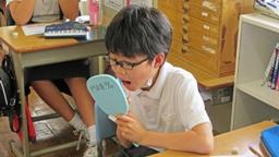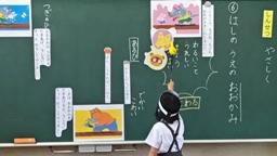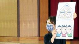 この日の授業は道徳「はしのうえのおおかみ」。「身近な人達に温かい心で接し,親切にしようとする心情」を育てる授業でした。1年生は,頭にオオカミの被り物をし,オオカミになったつもりで,ジェスチャーを交えて話し合いました。オオカミが変わったように,みんなもこれまで以上に,身近な人に進んで親切にすることができるかな?
