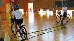 今年の交通安全教室は,新型コロナウイルス感染症予防のため,全校では行わず,初めて自転車での単独走行が許可される3年生のため,学級行事として3・4年生のみが行いました。それでも輪島警察署からは,交通課の水口さん,門前交番の曽野さんと鴨島さんがおいでになり,熱心にご指導下さいました。「ブタはしゃべる」(乗車前の確認事項。ブレーキの「ブ」,タイヤの「タ」,ハンドルの「は」,車体の「しゃ」,ベルの「べる」。)という,覚えやすく大切な言葉も教わりました。3・4年生の皆さん,これからは,この日教わったことを忘れずに,交通安全に気をつけて自転車に乗って下さい。