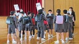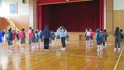 始業式翌日(1年生が初めて自分で家に帰る日),全校で集団下校を行いました。学校のすぐ裏の「もんぜん児童館」に向かう児童が多く,安心しました。これからも安全に気をつけて下校して下さいね。