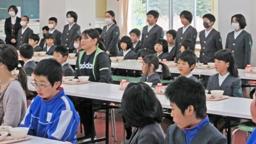 児童会役員,学級委員の任命式を行いました。通常この会は給食が終わった後で,そのままランチルームで行っています。しかし現在は,新型コロナウイルス感染症予防の観点から,全員同方向を向き,会話禁止という状況で給食を食べています。(スペースの関係で6年生は教室で食べている。)そこでこの日は,6年生にも集まってもらい,食事の前に行いました。任命された皆さん,門前東小学校,そしてその児童たちのために,がんばって下さい。