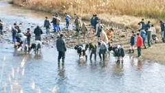 一般にヤマメは,降海せずに,一生を河川で過ごす河川残留型(陸封型)の個体です。この日は,これまで年末から降り続いた雨のため,川の水量が多く流れも比較的急でしたが,元気に育ったヤマメたちは,流れに逆らい,一生懸命上流目指して泳いでいきました。