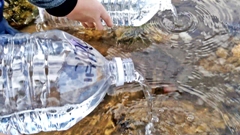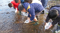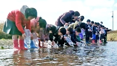 それぞれのペットボトルで,卵の状態の時から大切に育ててきたヤマメが,放流に適したサイズになったので,学校近くの八ヶ川中流の河原にて,一人一人が思いを込めて放流しました。「元気でね」「大きく育ってね」。本当にその通りです。