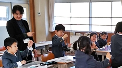お向かいの県立七尾特別支援学校輪島分校の六田裕美子先生が,特別支援教育地域サポート教員として,3学期の間,毎週金曜日に本校に来てくれることになりました。早速この日は,いろいろな学級で,授業担当の先生と一緒に,児童たちを指導してくれました。特に,6限目のクラブでは,編み物が得意ということで,クラフトクラブの児童たちにいろいろ教えてくれました。これから金曜日が楽しみですね。