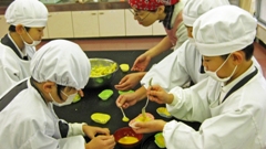 生活科の時間にさつまいもを使って,スイートポテトを作りました。包丁を使って,上手にさつまいもを切ることができました。自分たちで,作りたいものを決めて,作り方を調べて作ったスイートポテトの味はとてもおいしかったそうです。たくさん作ったので,職員室に差し入れに行った際には,「ぼくたちが作ったスイートポテトです。どうぞお食べください。」と上手に話していました。みんなで協力する姿や進んで洗い物などの片付けをしたり,「上手にできてるよ」などとあたたかい声かけをしたりするところはとても素敵でした。(田中)