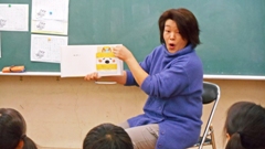 1年は國守さん。「ふとんがふっとんだ」と「となりのせきのますだくん」を読んでくださいました。物語に感情移入し,自分の思いが声に出てしまう子が何人かいたそうです。