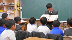 2年は田中先生。「なんでもモッテルさん」を読んでくれました。児童たちは,物語の内容をしっかりと理解した上で,お金では買えない大切なものについて考えることができました。