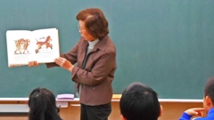 3年は宮本さん。「じゅうにしものがたり」を読んでくださいました。十二支のことを知っている児童がいて,それらを順番に,元気に言ってくれたそうです。
