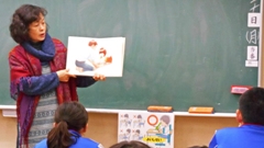この日は,月に一度の「読み聞かせ」の日でした。いつものボランティアさん(「お話の森」さん)にお願いしたのですが,都合のつかない方もおいでになり,私と田中先生も出番となりました。